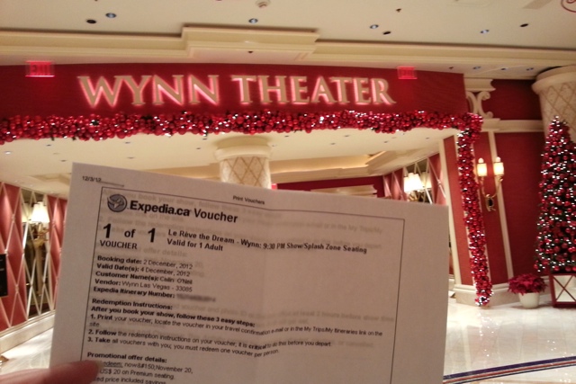 My ticket to see “Le Reve” at the Wynn Hotel. An AMAZING show!